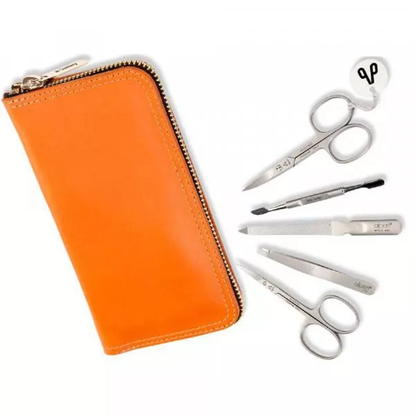 Alpen vous propose ici une élégante et raffinée trousse de manucure en cuir couleur tabac verrouillable grâce à une fermeture éclair.