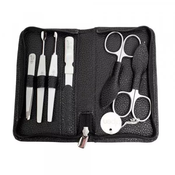 Trousse manucure Alpen 6P, en cuir noir et refermable grâce à sa fermeture éclair.